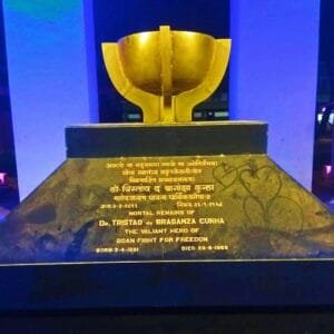 Memorial to Dr. Tristão de Bragança Cunha – Contains a brass urn with his mortal remains, commemorating his role as the Father of the Goan freedom movement.
