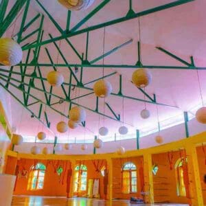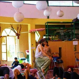 The Goa campus is nestled in a natural setting with palm trees and quiet surroundings, just minutes from Arambol Beach. The space is eco-conscious, rustic, and designed to support a peaceful yogic environment.
