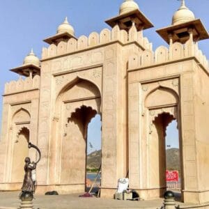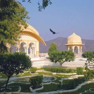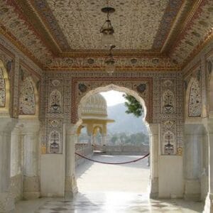 - The chhatris (domed pavilions), arched doorways, and floral patterns reflect Mughal influence, while the use of sandstone and the overall grandeur are distinctly Rajput.