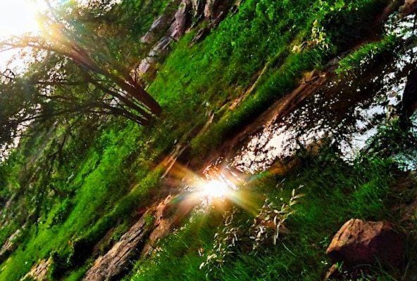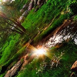 - A natural water stream flows nearby, adding to the spiritual ambiance.