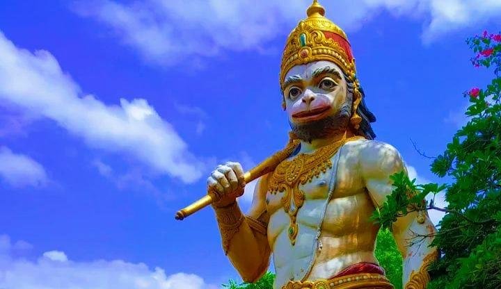 The walls of the temple are adorned with ancient paintings and carvings representing episodes from the Ramayana and Hanuman’s childhood.