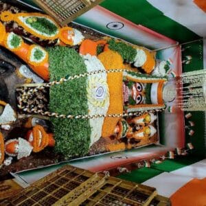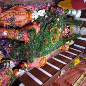 - Partially Submerged: Part of the idol is submerged in the waters of the Ganges River. It’s said that during the monsoon season, the river’s water level rises to touch the feet of the idol.